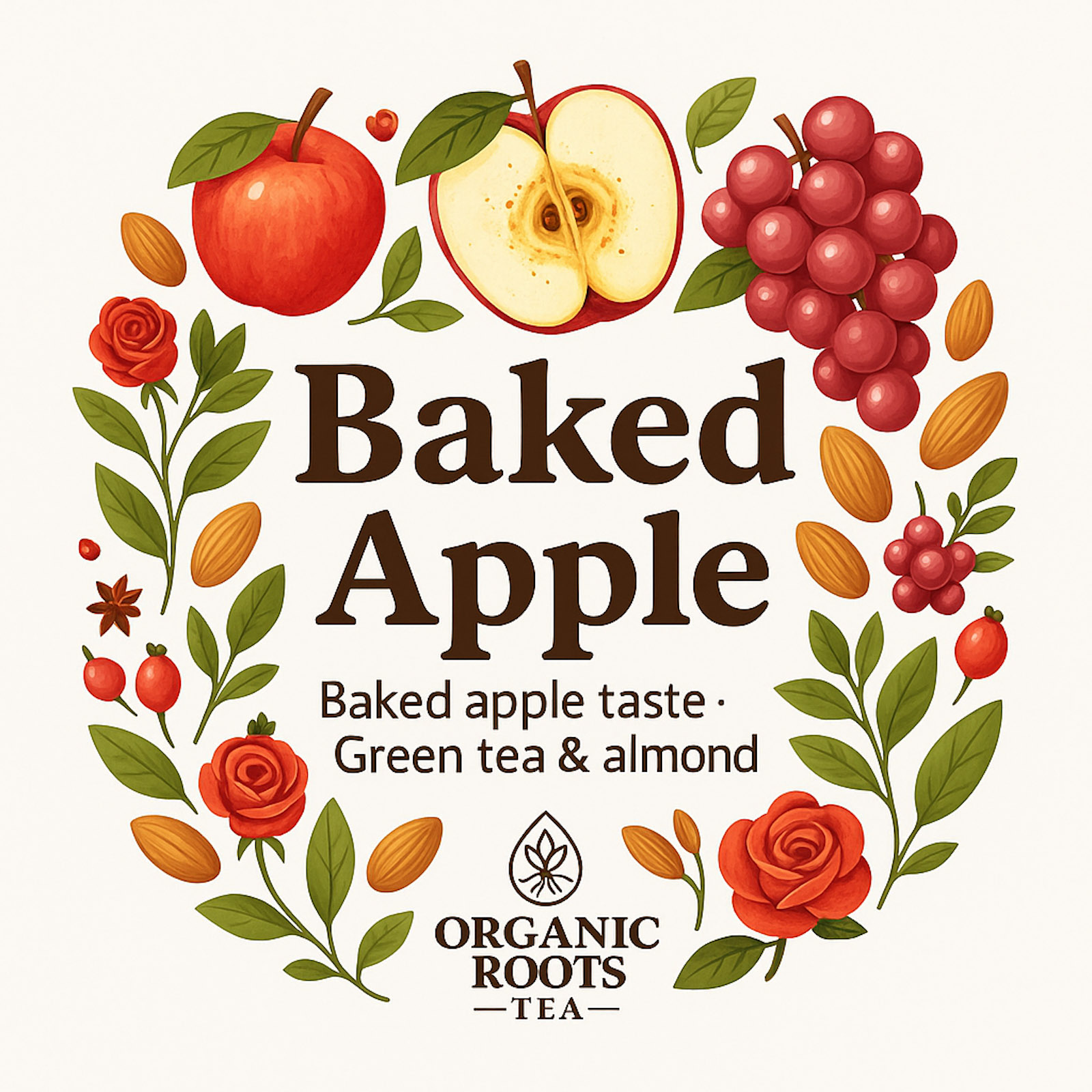Ingredients: Green Tea China Sencha, apple (19%), grape (grape, vegetable oil), flavour, rose petals, almond.